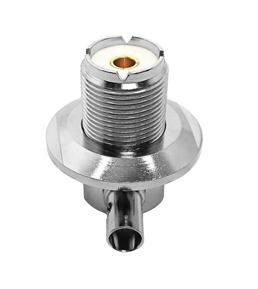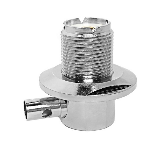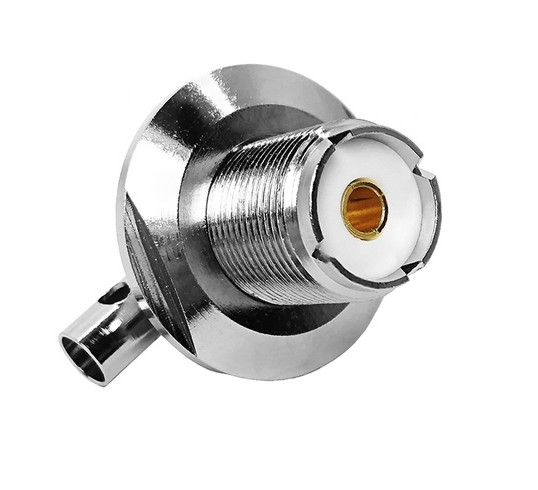 - Type : Connecteur UHF (Ultra High Frequency) SO239, femelle, à angle droit (90°).