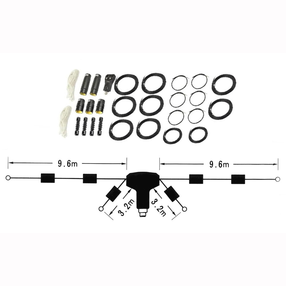 Longueur totale : environ 19,2 m, ce qui est assez compact pour une antenne couvrant ces bandes.