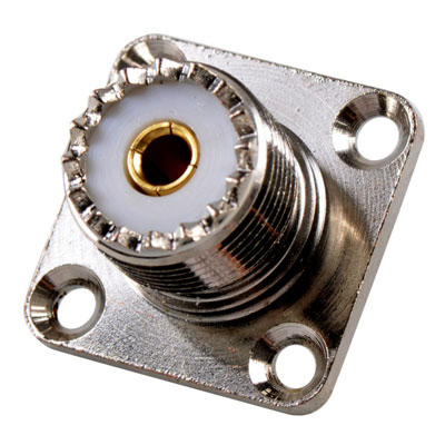 - Type : Connecteur coaxial UHF SO239 femelle (chassis) à 4 trous de fixation pour montage sur panneau.